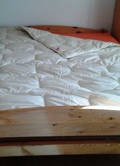 Wir verwenden für die Duvets unsere hofeigene Alpakawolle und lassen sie in der Schweiz zu Duvets verarbeiten, somit ein reines Schweizer Produkt. Die Weichheit dieser Naturfaser bewirkt in der Decke den einzigartigen Kuscheleffekt. Durch die Eigenschaft der Wolle wird der Feuchtigkeitshaushalt geregelt, das heisst die Feuchtigkeit des Körpers wird aufgenommen und an die Luft weitergegeben. Somit schwitzt man nicht und die Decke kann sowohl als Winter- wie auch als Sommerdecke eingesetzt werden. Die Alpaka Bettdecke ermöglicht einen erholsamen und entspannten Schlaf und somit eine ungestörte Nachtruhe. Um eine gewisse Formstabilität und das Volumen zu erhalten, wird der Alpakawolle ca. 10% entfettete Schafwolle aus lokalen Schafbeständen beigemischt. Die Verarbeitung genügt höchsten Qualitätsansprüchen. Vermittelt erholsamen, entspannenden Schlafkomfort!